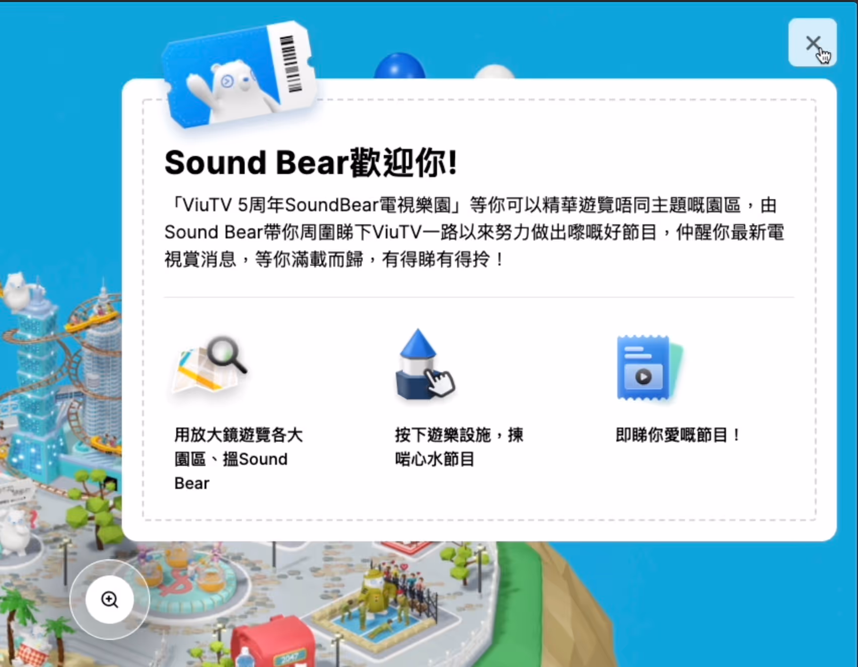 Next, we partnered with a front-end engineer to assemble the experience into a fully interactive map — allowing users to view the park overview, zoom into specific areas, and explore each program in detail.